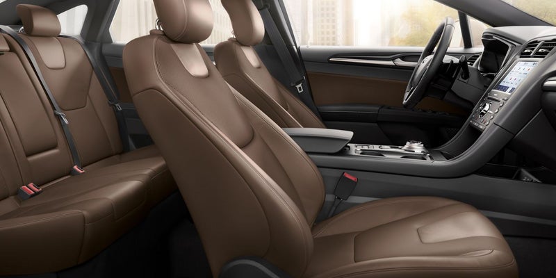 Two rows of seats fit five people comfortably with either cloth seats or supple quilted leather ones. The voice-activated Sync 3 infotainment system with an 8-inch touch screen offers Apple CarPlay and Android Auto smartphone integration. Listen to your favorite playlists through the six-speaker or upgraded 12-speaker Sony stereo system. You have plenty of room to carry luggage, groceries, and supplies with the 16 cubic feet of storage space in the trunk, and you'll find lots of cubby holes and storage compartments throughout the cabin to hold small personal items.