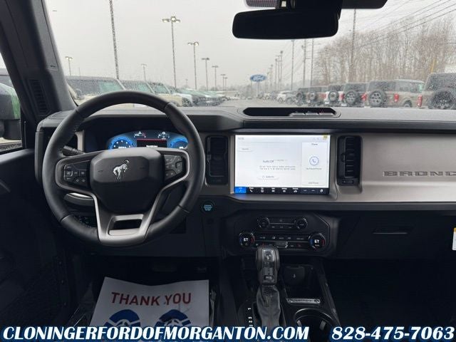 Eruption Green Metallic 2025 Ford Bronco Outer Banks NAVIGATION SYSTEM, LEATHER SEATS, BLIND SPOT DETECTION, ACTIVE PARK ASSIST, POLISHED WHEELS, SIRIUS/XM RADIO, FORD SYNC, HEATED SEATS, BACKUP SENSORS, BACKUP CAMERA, PUSH BUTTON START/STOP, 4X4/ALL WHEEL DRIVE/4WD, FACTORY WARRANTY, APPLE CARPLAY, Bluetooth®, 18 Bright Machined Aluminum Wheels, 3.73 Axle Ratio, Alloy wheels, AM/FM radio: SiriusXM with 360L, Auto High-beam Headlights, Automatic temperature control, Brake assist, Connected Navigation, Delay-off headlights, Electronic Stability Control, Exterior Parking Camera Rear, Fully automatic headlights, Heated door mirrors, Heated front seats, Heated Leather-Trimmed/Vinyl Bucket Seats, Heated steering wheel, Navigation system: Connected Navigation, Panic alarm, Radio data system, Security system, SiriusXM w/360L, SYNC 4, Variably intermittent wipers. 4WD 10-Speed Automatic 2.3L EcoBoost I-4