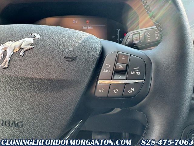 Equipment Group 300A Standard Package (AM/FM Stereo, Front Driver/Passenger Seat Back Map Pockets, Premium Trimmed Heated Front Sport Contour Bucket Seats, SiriusXM with 360L, SYNC 4 with Enhanced Voice Recognition, and Wheels: 18 Ebony Black), Ford Connectivity Package (1-Year Included), Internet access capable: 5G Modem - Ford Connectivity Package, Air Conditioning, Apple CarPlay/Android Auto, Auto High-beam Headlights, Automatic temperature control, Brake assist, Electronic Stability Control, Exterior Parking Camera Rear, Front Bucket Seats, Fully automatic headlights, Heated steering wheel, Rear Parking Sensors, Remote keyless entry, Steering wheel mounted audio controls, Variably intermittent wipers, 4-Wheel Disc Brakes, 6 Speakers, ABS brakes, Alloy wheels, AM/FM radio: SiriusXM with 360L, Auto-dimming Rear-View mirror, Compass, Delay-off headlights, Driver door bin, Driver vanity mirror, Dual front impact airbags, Dual front side impact airbags, Emergency communication system: SYNC 4 911 Assist, Four wheel independent suspension, Front anti-roll bar, Front Center Armrest, Front dual zone A/C, Front fog lights, Front License Plate Bracket, Front reading lights, Heated door mirrors, Heated front seats, Illuminated entry, Knee airbag, Low tire pressure warning, Memory seat, Occupant sensing airbag, Outside temperature display, Overhead airbag, Overhead console, Panic alarm, Passenger door bin, Passenger vanity mirror, Power door mirrors, Power driver seat, Power passenger seat, Power steering, Power windows, Radio data system, Rear anti-roll bar, Rear reading lights, Rear seat center armrest, Rear window defroster, Rear window wiper, Security system, Speed control, Speed-sensing steering, Speed-Sensitive Wipers, Split folding rear seat, Tachometer, Telescoping steering wheel, Tilt steering wheel, Traction control, and Trip computer.