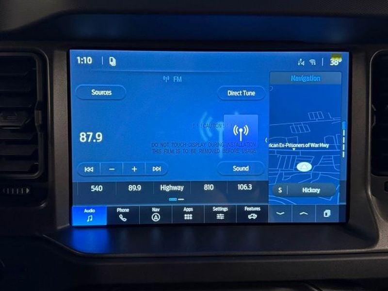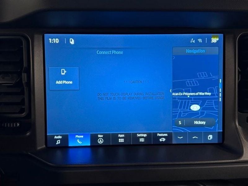 Equipment Group 222A Mid Package: 17" Carbonized Gray-Painted Aluminum Wheel; Rear Parking Sensors; Pro Power Onboard - 400W; Dual Smart Charging USB Ports; 2.3L EcoBoost I-4 Engine; Front Row Heated Seats; Driver and Front Passenger Illuminated Sliding Visor Vanity Mirrors; AM/FM Stereo; Dual-Zone Electronic Automatic Temperature Control; Connected Navigation; P255/75R17 A/T Tires; Ambient Footwell Lighting; Remote Start System; Cloth Bucket Seats; 2-Door Intelligent Access with Lock/unlock. Ford Co-Pilot360: Auto High-Beam Headlamps; Rear View Camera; Pre-Collision Assist with Automatic Emergency Braking; Blind Spot Information System (BLIS); Lane-Keeping System. Carbonized Gray Molded-In-color Hard Top. Hard Top Sound Deadening Headliner. **Equipment listed is based on original vehicle build and subject to change. Please confirm the accuracy of the included equipment by calling the dealer prior to purchase.**