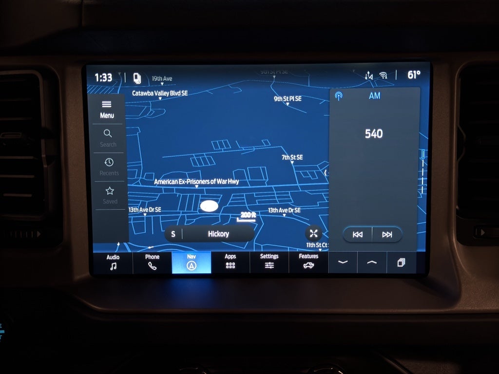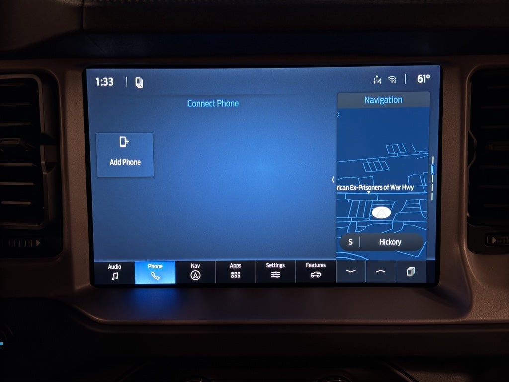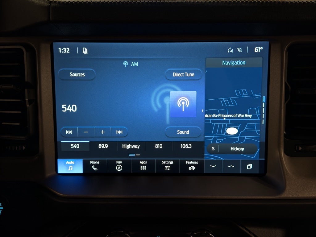 This Ford Bronco comes equipped with essential tech and convenience features including Navigation, Apple CarPlay for seamless smartphone integration, and a Back-Up Camera to make parking and towing easier. The leather seats provide a refined cabin experience, while the Heated Steering Wheel adds warmth and comfort during colder North Carolina mornings. Four-wheel drive ensures traction and control on challenging terrain, making this SUV ideal for weekend adventures or daily commuting.