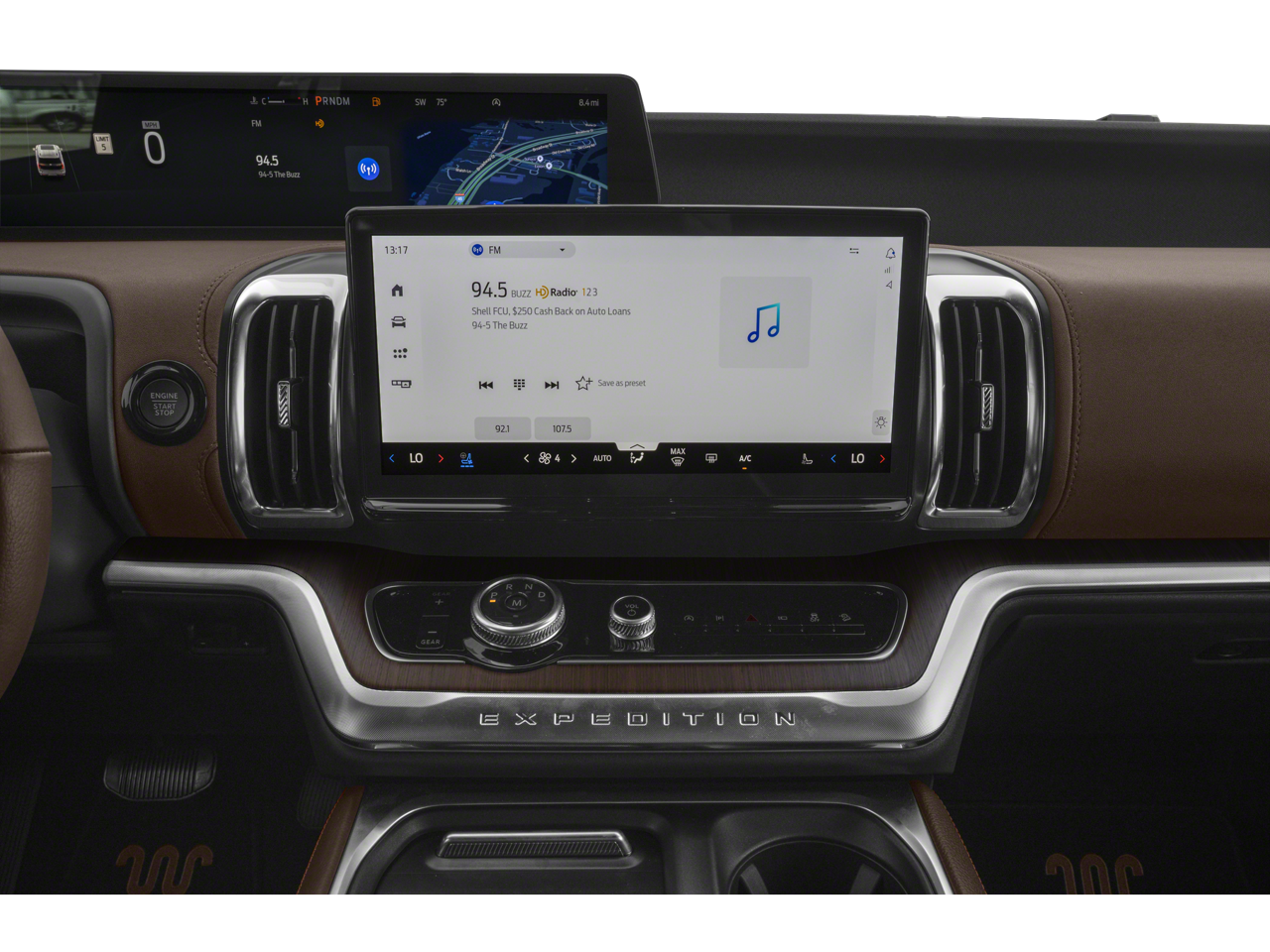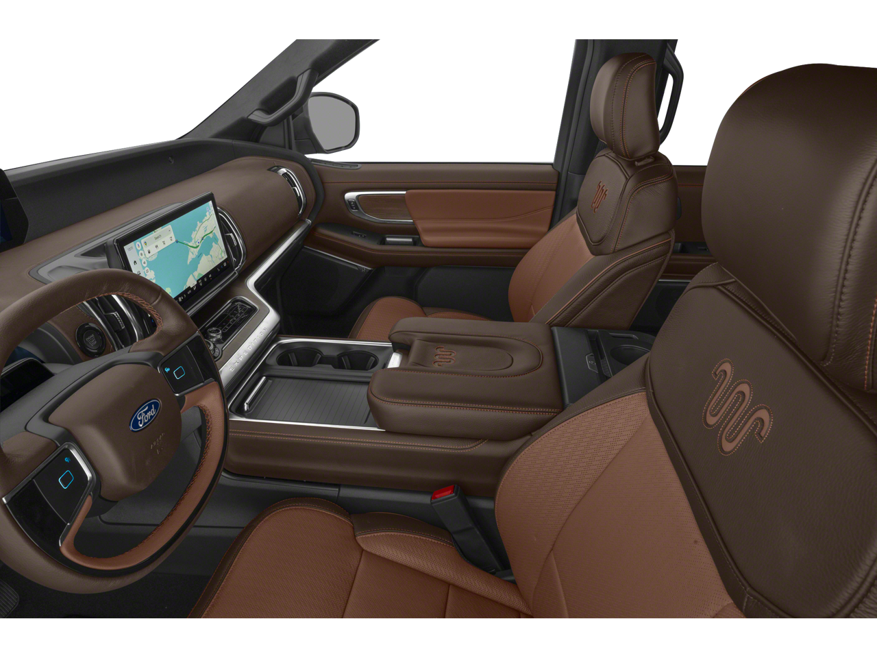 Equipment Group 400A (3.73 Axle Ratio, Digital Device Holder, Heated/Ventilated Premium Del Rio Leather Front Captain's Chairs, and Wheels: 22 x 9.0 Diamond Cut Machined Face Aluminum), Ford Connectivity Package (1-Year Included), Alloy wheels, Brake assist, Delay-off headlights, Electronic Stability Control, Emergency communication system: 911 Assist, Exterior Parking Camera Rear, Ford Digital Experience, Four wheel independent suspension, Fully automatic headlights, Heated front seats, Heated rear seats, Heated steering wheel, Leather steering wheel, Navigation System, Power moonroof: Vista Roof, Radio: B&O Unleashed Sound System by Bang & Olufsen, Rain sensing wipers, SiriusXM with 360L, Steering wheel mounted audio controls, Variably intermittent wipers, Ventilated front seats, 22 Speakers, 3rd row seats: split-bench, 4-Wheel Disc Brakes, ABS brakes, Adaptive suspension, Adjustable pedals, Air Conditioning, AM/FM radio: SiriusXM with 360L, Apple CarPlay/Android Auto, Auto High-beam Headlights, Auto-dimming door mirrors, Auto-dimming Rear-View mirror, Automatic temperature control, Bumpers: body-color, Compass, Driver door bin, Driver vanity mirror, Dual front impact airbags, Dual front side impact airbags, Front anti-roll bar, Front Bucket Seats, Front Center Armrest, Front dual zone A/C, Front License Plate Bracket, Front reading lights, Garage door transmitter, Genuine wood dashboard insert, Genuine wood door panel insert, Heated door mirrors, Illuminated entry, Low tire pressure warning, Memory seat, Occupant sensing airbag, Outside temperature display, Overhead airbag, Overhead console, Panic alarm, Passenger door bin, Passenger vanity mirror, Pedal memory, Power door mirrors, Power driver seat, Power passenger seat, Power steering, Power windows, Radio data system, Rear air conditioning, Rear anti-roll bar, Rear reading lights, Rear window defroster, Rear window wiper, Reclining 3rd row seat, Remote keyless entry, Security system, Speed control, Speed-sensing steering, Speed-Sensitive Wipers, Split folding rear seat, Spoiler, Steering wheel memory, Tachometer, Telescoping steering wheel, Tilt steering wheel, Traction control, Trip computer, Turn signal indicator mirrors, and Voltmeter.
