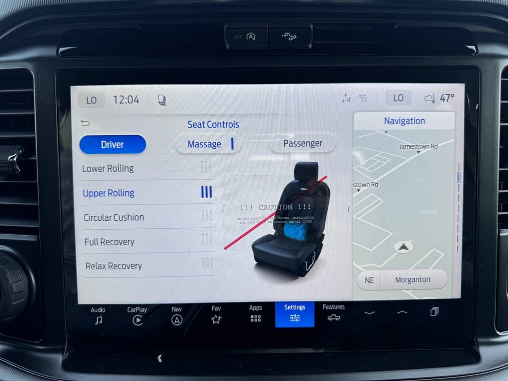 Equipment Group 701A Base (Electronic Locking with 3.55 Axle Ratio, Power-Deployable Running Boards, Radio: B&O Sound System by Bang and Olufsen, SYNC 4 with Enhanced Voice Recognition, Unique Multi-Contour Leather Bucket Seats, and Wheels: 20 Painted Gloss Ebony Black), Ford Connectivity Package (1-Year Included), FX4 Off-Road Package (4x4 FX4 Off-Road Bodyside Decal, Hill Descent Control, Monotube Rear Shocks, and Off-Road Tuned Front Shock Absorbers), GVWR: 7,400 lbs Payload Package, Internet access capable: 5G Modem - Ford Connectivity Package, 4WD, 4-Wheel Disc Brakes, 8 Speakers, ABS brakes, Adjustable pedals, Air Conditioning, Alloy wheels, AM/FM radio: SiriusXM with 360L, Auto High-beam Headlights, Auto tilt-away steering wheel, Auto-dimming door mirrors, Auto-dimming Rear-View mirror, Automatic temperature control, Brake assist, Bumpers: body-color, Compass, Delay-off headlights, Driver door bin, Driver vanity mirror, Driver's Side SecuriCode Keyless-Entry Keypad, Dual front impact airbags, Dual front side impact airbags, Electronic Stability Control, Emergency communication system: SYNC 4 911 Assist, Front anti-roll bar, Front Bucket Seats, Front Center Armrest, Front dual zone A/C, Front fog lights, Front License Plate Bracket, Front reading lights, Front wheel independent suspension, Fully automatic headlights, Garage door transmitter, Heated door mirrors, Heated front seats, Heated rear seats, Heated steering wheel, Illuminated entry, Leather steering wheel, Low tire pressure warning, Memory seat, Navigation system: Connected Navigation, Occupant sensing airbag, Outside temperature display, Overhead airbag, Overhead console, Panic alarm, Passenger door bin, Passenger vanity mirror, Pedal memory, Power door mirrors, Power driver seat, Power passenger seat, Power steering, Power windows, Radio data system, Rain sensing wipers, Rear reading lights, Rear seat center armrest, Rear step bumper, Rear window defroster, Remote keyless entry, Security system, Speed control, Split folding rear seat, Steering wheel memory, Steering wheel mounted audio controls, Tachometer, Telescoping steering wheel, Tilt steering wheel, Traction control, Tray Style Floor Liner, Trip computer, Turn signal indicator mirrors, Variably intermittent wipers, Ventilated front seats, and Wheel Well Liner.