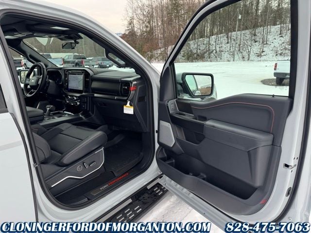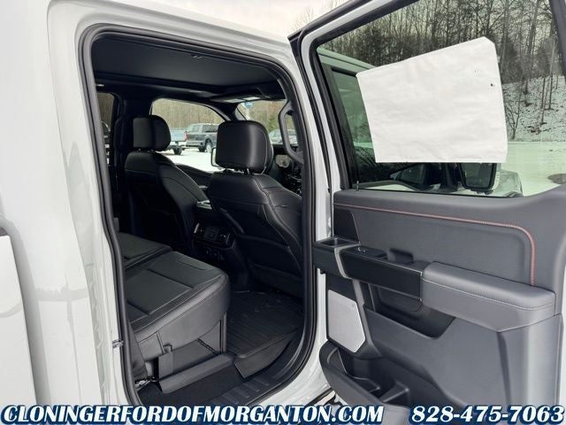 Equipment Group 801A Standard (17 Cast Aluminum Wheels, Electronic Locking with 4.10 Axle Ratio, Leather Trimmed Seats, Radio: B&O Unleashed Sound System by Bang & Olufsen, and SYNC 4 with Enhanced Voice Recognition), Ford Connectivity Package (1-Year Included), Internet access capable: 5G Modem - Ford Connectivity Package, 4WD, AM/FM radio: SiriusXM with 360L, Automatic temperature control, Delay-off headlights, Electronic Stability Control, Fully automatic headlights, Heated door mirrors, Heated front seats, Heated rear seats, Heated steering wheel, Lane Departure Warning System, Navigation system: Connected Navigation, Panic alarm, Radio data system, Twin Panel Moonroof, Variably intermittent wipers, Ventilated front seats, 14 Speakers, 4-Wheel Disc Brakes, ABS brakes, Adjustable pedals, Air Conditioning, Alloy wheels, Auto High-beam Headlights, Auto tilt-away steering wheel, Auto-dimming door mirrors, Auto-dimming Rear-View mirror, Brake assist, Bumpers: body-color, Compass, Driver door bin, Driver vanity mirror, Driver's Side SecuriCode Keyless-Entry Keypad, Dual front impact airbags, Dual front side impact airbags, Emergency communication system: SYNC 4 911 Assist, Front anti-roll bar, Front Bucket Seats, Front Center Armrest, Front dual zone A/C, Front fog lights, Front License Plate Bracket, Front reading lights, Front wheel independent suspension, Garage door transmitter, Illuminated entry, Leather steering wheel, Low tire pressure warning, Memory seat, Occupant sensing airbag, Outside temperature display, Overhead airbag, Overhead console, Passenger door bin, Passenger vanity mirror, Pedal memory, Power door mirrors, Power driver seat, Power passenger seat, Power steering, Power windows, Rain sensing wipers, Rear reading lights, Rear step bumper, Rear window defroster, Remote keyless entry, Security system, Speed control, Speed-sensing steering, Split folding rear seat, Steering wheel memory, Steering wheel mounted audio controls, Tachometer, Telescoping steering wheel, Tilt steering wheel, Tough Bed Spray-in Bedliner, Traction control, Trip computer, and Turn signal indicator mirrors.