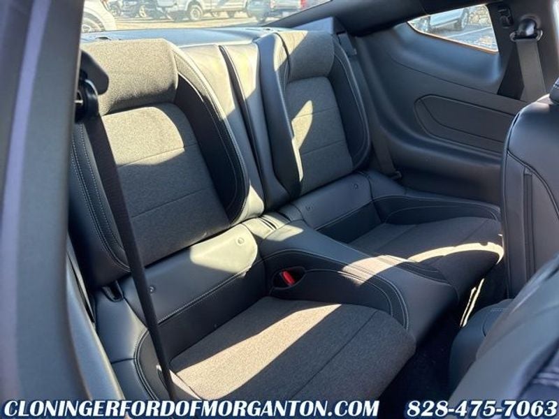 Mustang Nite Pony Package (Black Mirror Caps, Black Painted Wedge Decklid Spoiler, Painted Black Roof, and Wheels: 19 x 8.5 Ebony Black-Painted Aluminum), 1st Row Carpeted Black Floor Mats, 4-Wheel Disc Brakes, ABS brakes, Air Conditioning, Alloy wheels, AM/FM Stereo, Auto High-beam Headlights, Automatic temperature control, Brake assist, Bumpers: body-color, Compass, Delay-off headlights, Driver door bin, Driver vanity mirror, Dual front impact airbags, Dual front side impact airbags, Electronic Stability Control, Emergency communication system: 911 Assist, Exterior Parking Camera Rear, Four wheel independent suspension, Front anti-roll bar, Front Bucket Seats, Front Center Armrest, Front dual zone A/C, Front reading lights, Fully automatic headlights, Illuminated entry, Knee airbag, Leather Shift Knob, Low tire pressure warning, Occupant sensing airbag, Outside temperature display, Overhead airbag, Overhead console, Panic alarm, Passenger door bin, Passenger vanity mirror, Power door mirrors, Power steering, Power windows, Radio data system, Rain sensing wipers, Rear anti-roll bar, Rear Parking Sensors, Rear window defroster, Remote keyless entry, Speed control, Speed-sensing steering, Speed-Sensitive Wipers, Split folding rear seat, Sport steering wheel, Steering wheel mounted audio controls, SYNC 4, Tachometer, Telescoping steering wheel, Tilt steering wheel, Traction control, Trip computer, Variably intermittent wipers, Voltmeter, and Wedge Decklid Spoiler. Price includes the following rebates:$1000 - Retail Customer Cash. Exp. 03/31/2026