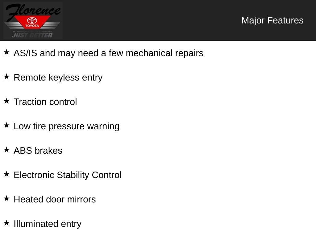 AS/IS and may need a few mechanical repairs, RAV4 Sport V6, 4D Sport Utility, 3.5L V6 DOHC Dual VVT-i 24V, 5-Speed Automatic Electronic with Overdrive, FWD, ABS brakes, Alloy wheels, Electronic Stability Control, Heated door mirrors, Illuminated entry, Low tire pressure warning, Remote keyless entry, Traction control.