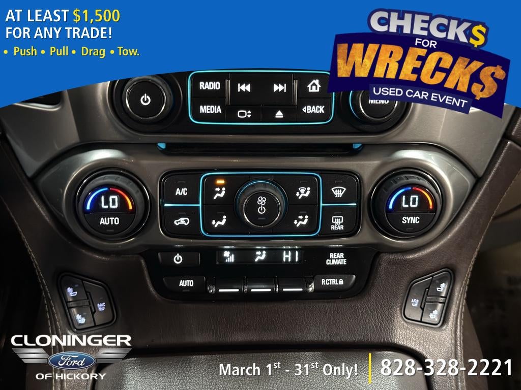 2016 Chevrolet Suburban 1500 LTZ — Hickory NC. Powerful 5.3L V8, RWD, and luxury features make this Chevrolet Suburban the perfect blend of capability and comfort. With a spacious three-row interior, this LTZ delivers seating for up to eight, generous cargo space, and the confidence of Chevrolet engineering. Priced to move — this is the best price on a 2016 Chevrolet Suburban 1500 LTZ in the area. Premium tech and convenience include a BOSE stereo for rich audio, Hands Free Bluetooth® for safe calling and streaming, Apple CarPlay for seamless smartphone integration, and built-in Navigation to keep you on course. Safety features such as Cross-Traffic Alert add extra awareness when reversing in busy lots. Comfort amenities include heated seats, leather trim, and tri-zone climate control to keep passengers comfortable on long drives. This Chevrolet Suburban is a great choice for families, contractors, and anyone who needs towing capability paired with refined interior appointments. Located in Hickory, NC, this vehicle is available for immediate test drive and inspection. With a competitive best-price guarantee, financing options, and a commitment to transparency, this 2016 Chevrolet Suburban 1500 LTZ is ready to go to work for you. Contact us to schedule your visit in Hickory today.