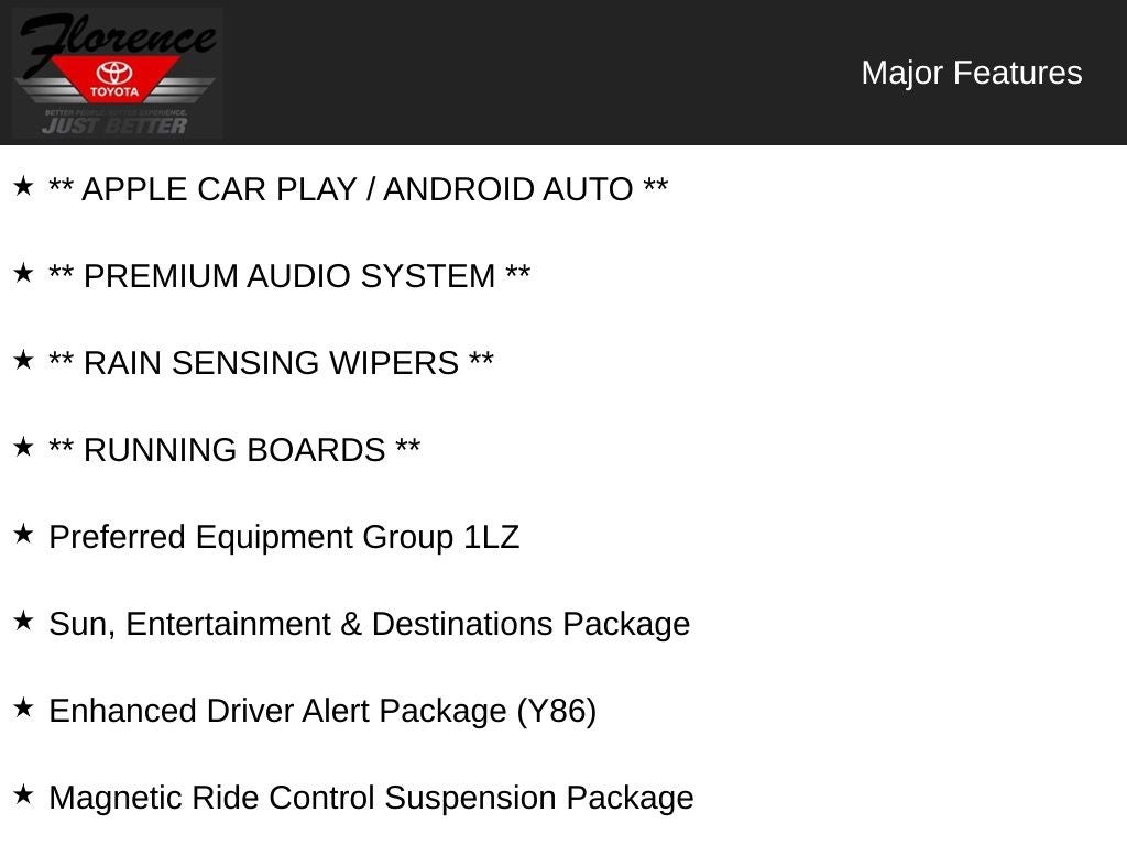 - Suspension Package, Magnetic Ride Control road sensing electronically controlled shock absorbers