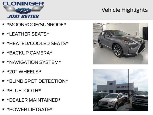 *MOONROOF/SUNROOF*, *LEATHER SEATS*, *HEATED/COOLED SEATS*, *BACKUP CAMERA*, *NAVIGATION SYSTEM*, *20 WHEELS*, *BLIND SPOT DETECTION*, *Bluetooth®*, *DEALER MAINTAINED*, *POWER LIFTGATE*, *PUSH BUTTON START/STOP*, *SIRIUS/XM SATELLITE RADIO*, WWW.CLONINGERTOYOTA.COM, Rear-Cross Traffic, 12.3 Navigation System, 3500 lbs Tow Prep Package, Driver Seat Memory w/3 Settings, Heavy Duty Alternator, Heavy-Duty Radiator, Leather Seat Trim, Lexus Enform App Suite, Lexus Enform Destination Assist, Power Folding Electrochromic Mirror w/Memory, Premium Package, Rear Armrest Storage Compartment, Single-Disc DVD Changer, Steering Wheel Memory, Transmission Cooler.