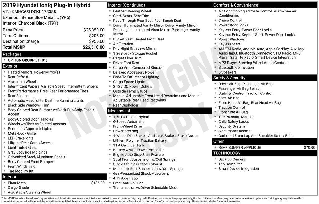 - Vehicle Name: Hyundai Ioniq Plug-In Hybrid