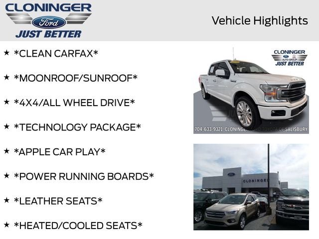 *CLEAN CARFAX*, *MOONROOF/SUNROOF*, *4X4/ALL WHEEL DRIVE*, *TECHNOLOGY PACKAGE*, *APPLE CAR PLAY*, *POWER RUNNING BOARDS*, *LEATHER SEATS*, *HEATED/COOLED SEATS*, *BACKUP CAMERA*, *NAVIGATION SYSTEM*, *20 WHEELS*, *BLIND SPOT DETECTION*, *Bluetooth®*, *DEALER MAINTAINED*, *LOCALLY OWNED*, *PUSH BUTTON START/STOP*, *SIRIUS/XM SATELLITE RADIO*, WWW.CLONINGERFORD.COM.