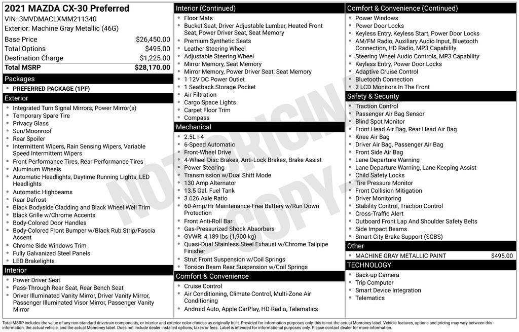- MAZDA CONNECTâ„¢ Infotainment System Voice Command -inc: 8.8" large center display, mobile 911 automatic emergency notification, HD Radio, Apple CarPlay/Android Auto, multi-function commander control, Pandora internet radio integration, Radio Broadcast Data System program information, SMS text message audio delivery and reply and remote control