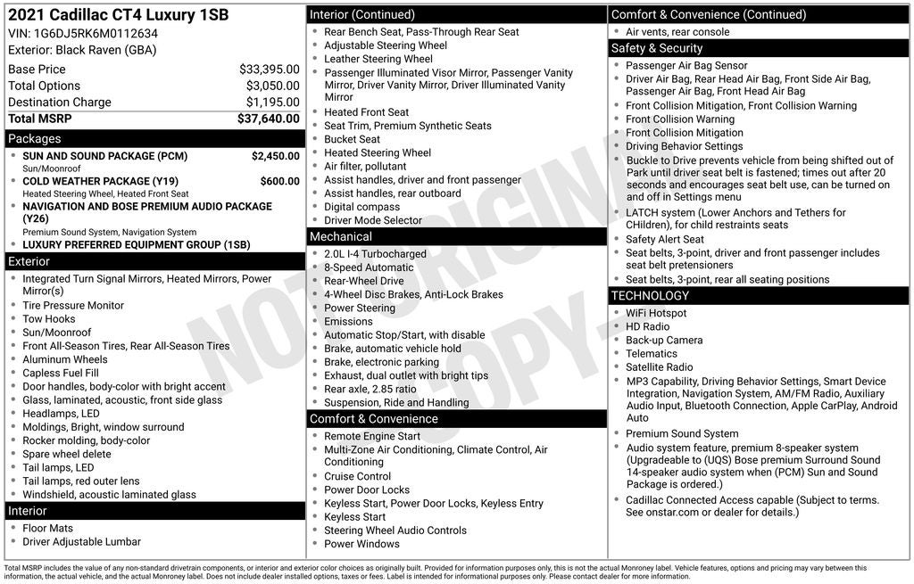 - Vehicle Name: Cadillac CT4