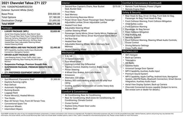 Whether tackling your daily commute or embarking on an adventure, the 2021 Chevrolet Tahoe Z71 is the ultimate full-size SUV. Its blend of power, technology, and refined style make it a standout choice in the segment.