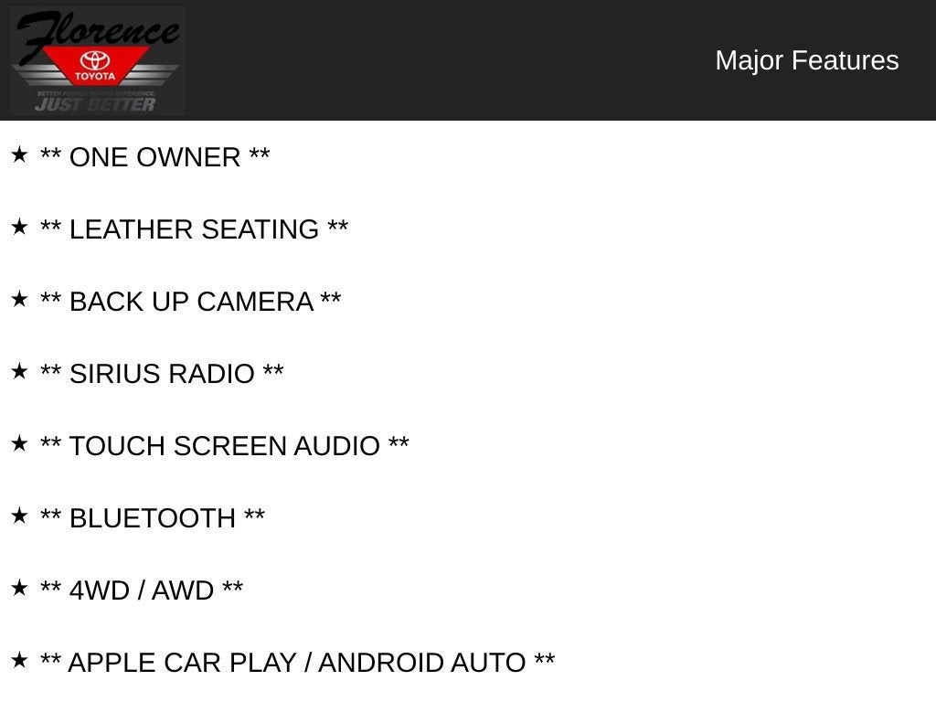 Discover this well-maintained 2021 Toyota Camry SE with AWD, now available in Florence, SC. This stylish mid-size sedan pairs a fuel-efficient 4-cylinder 2.5L gasoline engine with Toyota's reliable automatic transmission and confident all-wheel-drive traction, providing a balanced blend of performance and everyday practicality. With CARFAX 1-Owner history, this Toyota Camry has been cared for and presents a strong ownership record for peace of mind. Inside, enjoy seamless connectivity through Android Auto and Apple CarPlay, keeping navigation, music, and hands-free calling easily accessible. The Back-Up Camera enhances visibility for safer parking and maneuvering, while Automatic Climate Control maintains a comfortable cabin temperature no matter the season. The SE trim adds sporty exterior accents and supportive seating for a refined driving experience. Safety features, combined with Toyota's reputation for long-term durability, make this Toyota Camry an excellent choice for commuters, families, and anyone seeking dependable transportation in the Florence area. Economical to operate and simple to maintain, this model offers modern convenience without sacrificing reliability. Schedule a test drive to experience the smooth ride, responsive handling, and user-friendly tech first-hand. Located in Florence, SC, this 2021 Toyota Camry SE AWD is ready to serve your daily driving needs with confidence and comfort.