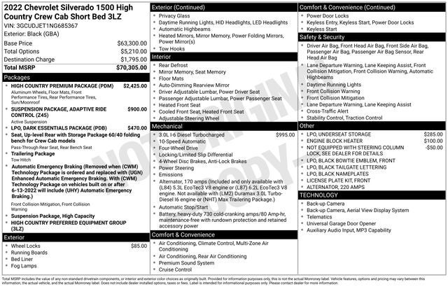 - High Country Premium Package with 22-inch wheels and sunroof
