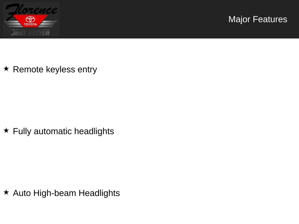At Florence Toyota come see how our USED CARS are JUST BETTER. We offer the following benefits: Lifetime Power Train (Some exclusions apply), 1st Year Maintenance, $500 Additional Trade In Appraisal, 72 Hour Vehicle Exchange Program, Yearly Vehicle Appraisal & Safety Inspection, VIP Loyalty Program, Routine Express Service, Courtesy Service Shuttle, Express Buying Service. Also, as an added benefit we will buy your vehicle even if you don't buy ours!! Call today (866)830-0793 or visit us at www.florencetoyota.com *Customer must trade-in a vehicle to receive $1,000 Trade Assist credit that is included in the online price. **Financing must be provided by a third-party lender using this dealership's assistance for Customer to receive $1,000 Financing Assist credit that is included in the online price. See dealer for complete details.