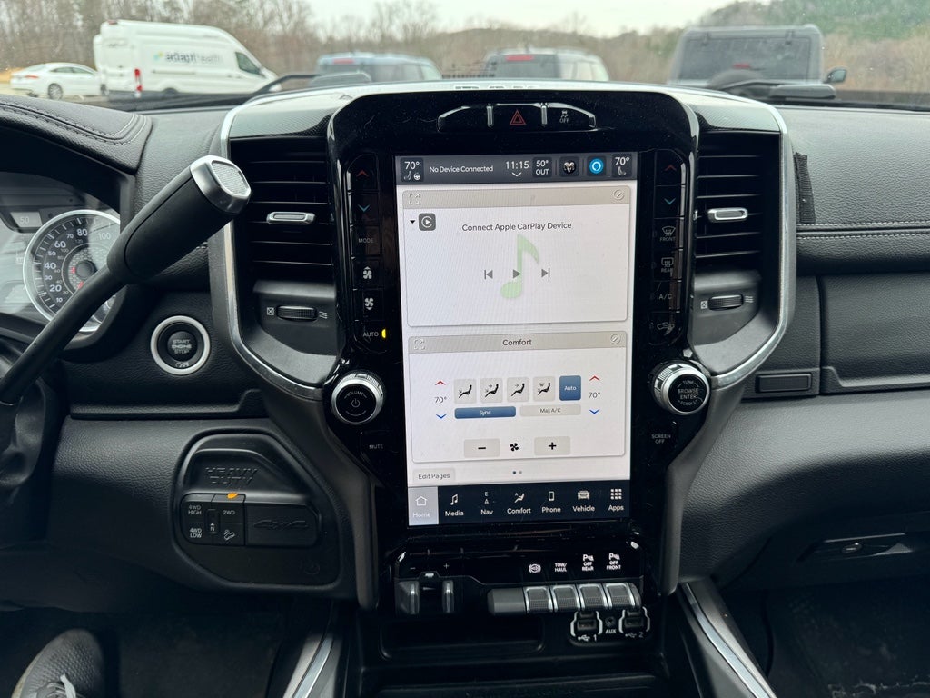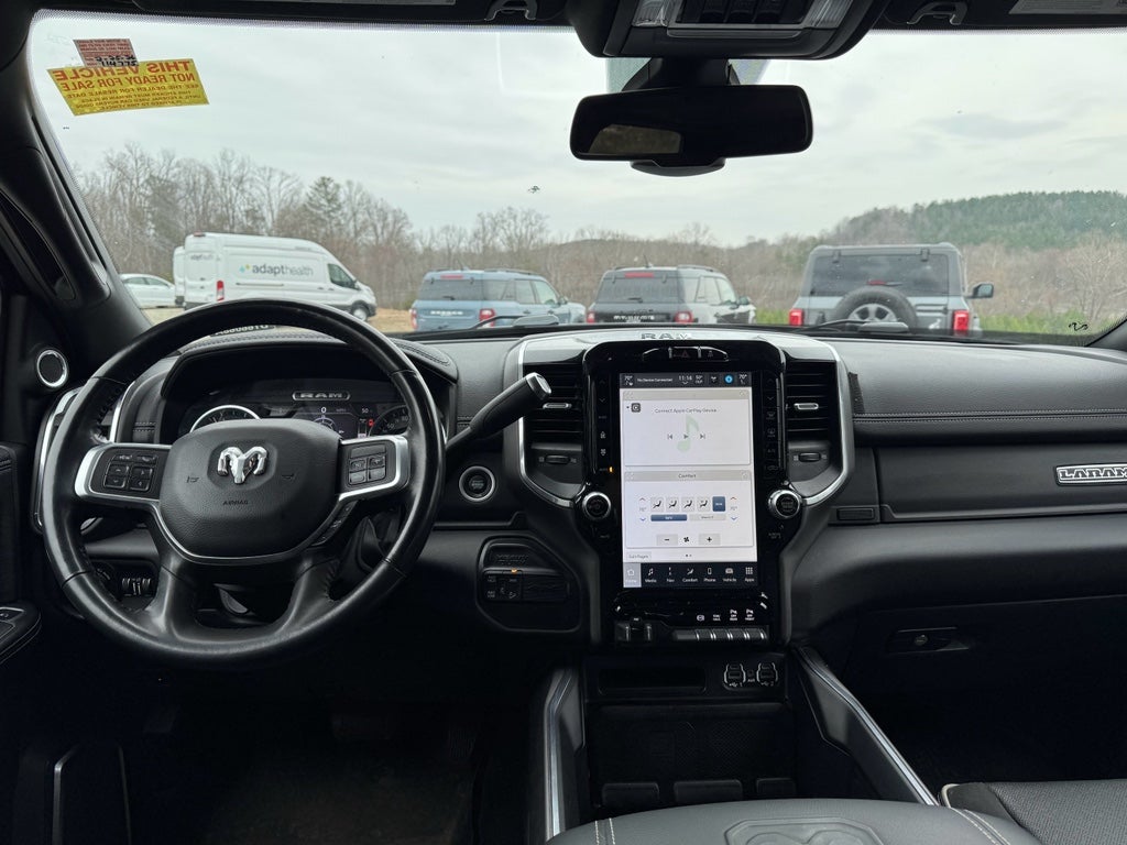 Laramie Level B Equipment Group (DISC) (17 Speaker harman kardon Premium Sound, 4G LTE Wi-Fi Hot Spot, 8.4 Touchscreen Display, Alexa Built-In, All R1 High Radios, All Radio Equipped Vehicles, Apple CarPlay, Auto High Beam Headlamp Control, Chrome Exterior Mirrors, Connected Travel & Traffic Services, Connectivity - US/Canada, Disassociated Touchscreen Display, Exterior Mirrors Courtesy Lamps, Exterior Mirrors w/Heating Element, Exterior Mirrors w/Memory, Exterior Mirrors w/Supplemental Signals, Foam Bottle Insert (Door Trim Panel), For Details, Visit DriveUconnect.com, For More Info, Call 800-643-2112, Global Telematics Box Module (TBM), Google Android Auto, GPS Antenna Input, GPS Navigation, HD Radio, Heated Second Row Seats, Integrated Center Stack Radio, Integrated Voice Command w/Bluetooth®, Mirror Running Lights, Mirror-Mounted Aux Reverse Lamps, Off-Road Information Pages, Power Adjustable Convex Aux Mirrors, Power Adjustable Pedals w/Memory, Power-Folding Mirrors, Pwr Convenience Chrome Tow Mirrors w/Spotter & Memory, Radio: Uconnect 5 Nav w/8.4 Display, Radio/Driver Seat/Mirrors/Pedals Memory, Rain Sensitive Windshield Wipers, Remote Tailgate Release, Selectable Tire Fill Alert, SiriusXM Radio Service, SiriusXM w/360L, and Trailer Tow Mirrors), Night Edition (Black Exterior Mirrors, Black Exterior Truck Badging, Black Headlamp Bezels, Black Interior Accents, Black RAM Head Tailgate Badge, Black Tail Lamp Bezels, Black Wheel Center Hub, Body Color Door Handles, Body Color Grille Surround, Gloss Black Grille Billets/Accents, Painted Front Bumper, Painted Rear Bumper, Pwr Convenience Black Tow Mirrors w/Spotter & Memory, and Wheels: 20 x 8.0 Black Painted Aluminum), Off Road Package (Front Performance Tuned Shock Absorbers, Hill Descent Control, Off Road Decal, Rear Performance Tuned Shock Absorbers, and Tow Hooks), Quick Order Package 2HH Laramie, Towing Technology Group B (Center Stop Lamp w/Cargo View Camera, Surround View Camera System, and Trailer Reverse Guidance), #1 Seat Foam Cushion, 10 Speakers, 115V Auxiliary Rear Power Outlet, 12 Touchscreen Display, 2 Way Rear Headrest Seat, 220 Amp Alternator, 3.73 Axle Ratio, 4 Way Front Headrests, 4-Wheel Disc Brakes, 5th Wheel/Gooseneck Towing Prep Group, ABS brakes, Active Noise Control System, Adjustable pedals, Air Conditioning, Alloy wheels, AM/FM radio: SiriusXM, Anti-Spin Differential Rear Axle, Apple CarPlay/Android Auto, Auto-dimming Rear-View mirror, Automatic temperature control, Brake assist, Bumpers: chrome, Center Hub, Clearance Lamps, Compass, Delay-off headlights, Driver door bin, Driver vanity mirror, Dual front impact airbags, Dual front side impact airbags, Electronic Stability Control, Electronically Controlled Throttle, Front a