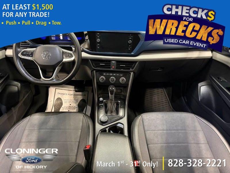 Looking for a compact SUV that combines efficiency, comfort, and confidence on every road? This 2022 Volkswagen Taos SE with AWD and a 1.5L 4-cylinder gasoline engine is ready to exceed expectations. Located in Hickory, NC, this Volkswagen Taos SE delivers responsive performance and excellent fuel economy while the advanced AWD system provides traction and stability for year-round driving. Inside, enjoy premium leather seats that elevate every commute with comfort and easy-care durability. Stay connected and entertained with Apple CarPlay and hands-free Bluetooth®, making navigation, music, and calls seamless and safe. Remote start adds convenience on chilly mornings or hot afternoons, getting the cabin ready before you step inside. Advanced safety features include Forward Collision Warning to help you stay aware and avoid potential hazards on the road. This Volkswagen Taos SE offers a refined interior, smart technology, and practical cargo space—perfect for daily driving, weekend getaways, or family errands. The compact footprint makes parking and city driving a breeze, while the AWD capability expands your confidence on wet or slick roads. Priced to move, this vehicle represents the best price in the area for a 2022 Volkswagen Taos SE with this level of equipment. Visit in Hickory, NC to see why this Volkswagen Taos SE is the smart choice for drivers who want style, safety, and value in one capable package.