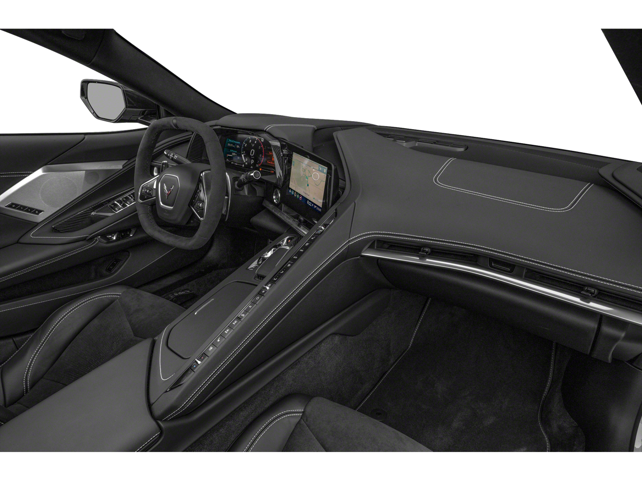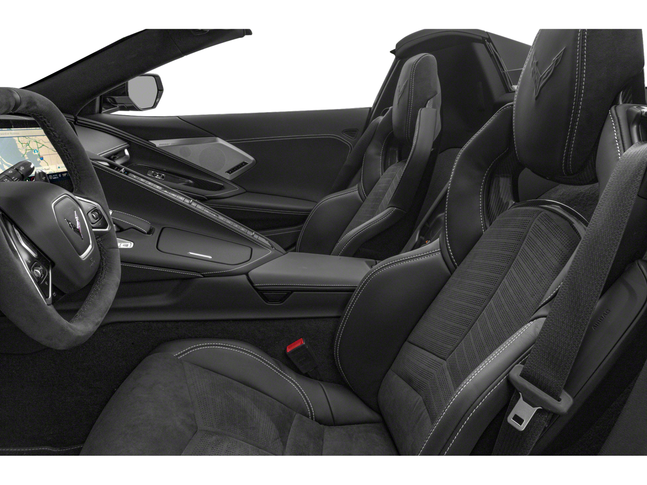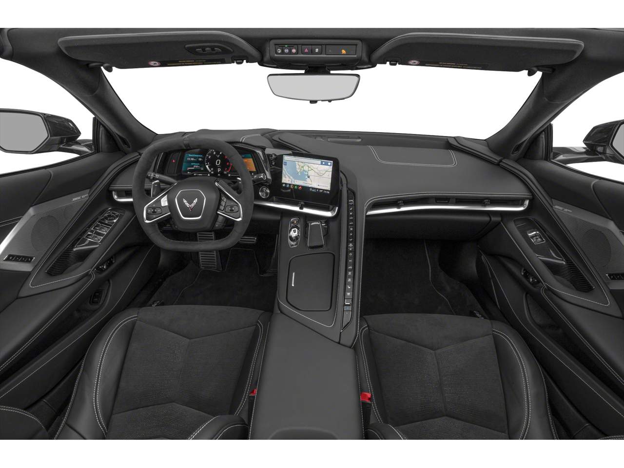 Battery Protection Package, Carbon Flash Metallic Painted Outside Mirrors (Carbon Flash Metallic-Painted Outside Mirrors), Contoured Liner Protection Package (LPO) (All-Weather Floor Liners w/Jake Logo (LPO) and Contoured Cargo Area Liners w/Jake Logo (LPO)), Corvette Racing Themed Graphics Package (LPO), Custom Leather Wrapped Interior Package, Memory Driver & Passenger Convenience Package, Preferred Equipment Group 3LT (2 Cargo Nets, Driver Power Bolster Seat Adjuster, Electrical Theft Deterrent System, HD Front & Rear Vision Cameras, Head-Up Display, Heated & Vented Driver & Passenger Seats, Heated Steering Wheel, Passenger Power Bolster Seat Adjuster, Performance Data & Video Recorder, Power Driver Lumbar Control Seat Adjuster, Power Passenger Lumbar Control Seat Adjuster, Power-Adjustable Outside Heated Mirrors, Rear Cross Traffic Alert, Side Blind Zone Alert, Sueded Microfiber-Wrapped Upper Interior Trim Pkg, Universal Home Remote, Vehicle Inclination Theft Deterrent Sensor, Vehicle Interior Movement Theft Deterrent Sensor, and Wireless Charging for Devices), Stealth Interior Trim Package, Stingray R Appearance Package (LPO) (Stingray R Logo Wheel Center Caps (LPO)), Z51 Performance Package (Electronic Limited-Slip Differential, Heavy-Duty Cooling System, Performance Exhaust w/Stainless-Steel Tips, Performance Rear Axle Ratio, Rear Z51 Spoiler, Z51 Performance Brakes, and Z51 Performance Suspension), 14 Speakers, 2-Tone Seats, 4-Wheel Disc Brakes, 8-Way Power Driver Seat Adjuster, 8-Way Power Passenger Seat Adjuster, ABS brakes, Air Conditioning, Alloy wheels, AM/FM radio: SiriusXM, Apple CarPlay/Android Auto, Auto-dimming door mirrors, Auto-dimming Rear-View mirror, Automatic Leveling System Headlamp Control, Automatic temperature control, Black Composite Rocker Extensions (LPO), Black Exhaust Tips, Black Lug Nuts (LPO), Black Recovery Hook (LPO), Bose Performance Series Sound System w/14 Speakers, Brake assist, Bright Red-Painted Calipers, Bumpers: body-color, Compass, Convertible HardTop, Convertible roof lining, Convertible Top w/Carbon Flash Nacelles & Roof, Delay-off headlights, Driver door bin, Driver vanity mirror, Dual front impact airbags, Dual front side impact airbags, Electronic Stability Control, Emergency communication system: OnStar and Chevrolet connected services capable, Four wheel independent suspension, Front anti-roll bar, Front Bucket Seats, Front Center Armrest, Front dual zone A/C, Front Lift Adjustable Height w/Memory, Front reading lights, Fully automatic headlights, Garage door transmitter, Glass rear window, GT2 Bucket Seats, HD Radio, Heads-Up Display, Heated door mirrors, Heated front seats, Heated steering wheel, Illuminated entry, In