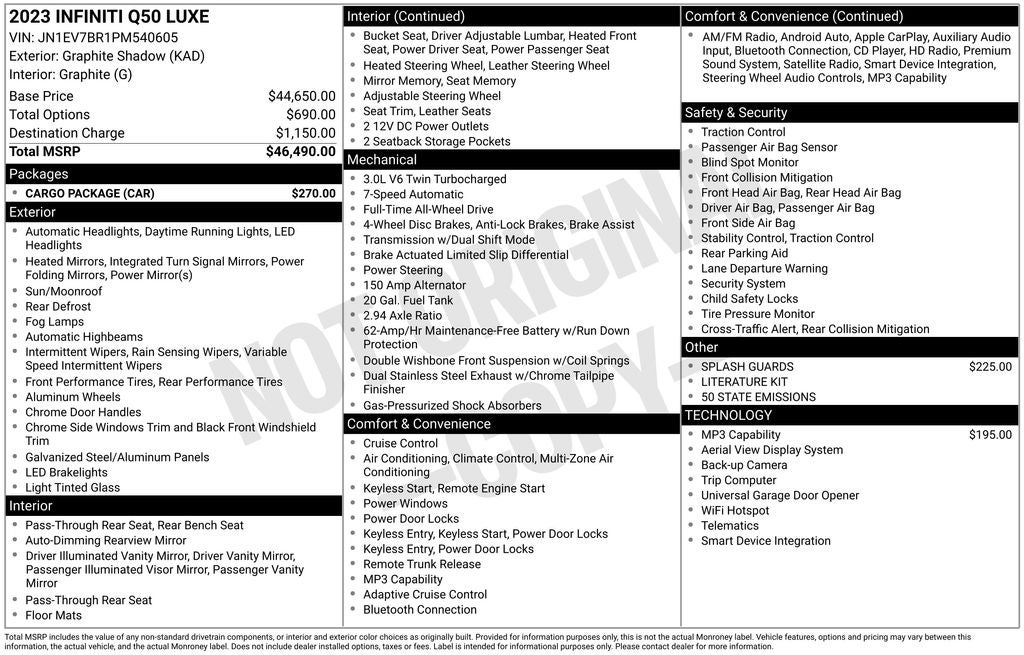 - Vehicle Name: INFINITI Q50