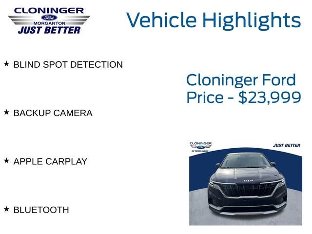 BLIND SPOT DETECTION, BACKUP CAMERA, APPLE CARPLAY, Bluetooth®, Apple CarPlay & Android Auto.
