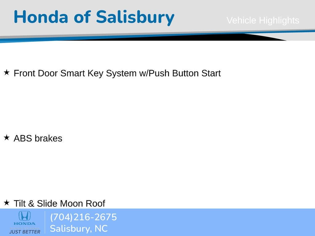 At Honda of Salisbury come see how we are your JUST BETTER dealership. Better People, Better Experience!!! We offer the following benefits: Better Value Guarantee, Lifetime Power Train (Some exclusions apply), $500 Additional Trade in Appraisal, 72 Hour Vehicle Exchange Program, Yearly Vehicle Appraisal & Safety Inspection, VIP Loyalty Program, Routine Express Service, Courtesy Service Shuttle, Express Buying Service. Also, as an added benefit we will buy your vehicle even if you don't buy ours!!