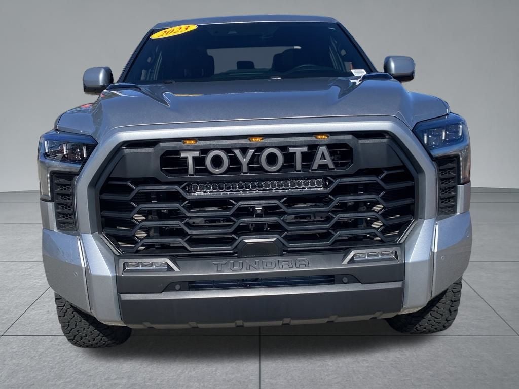 Experience the power and efficiency of the 2023 Toyota Tundra Hybrid Platinum. This exceptional full-size pickup combines advanced hybrid technology with uncompromising capability, delivering a commanding presence on the road.