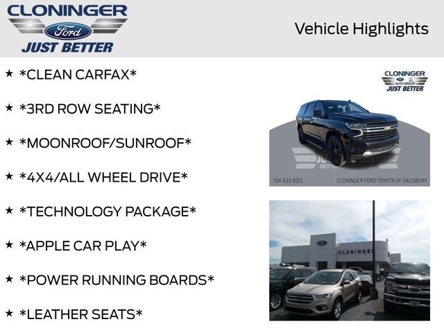 *CLEAN CARFAX*, *3RD ROW SEATING*, *MOONROOF/SUNROOF*, *4X4/ALL WHEEL DRIVE*, *TECHNOLOGY PACKAGE*, *APPLE CAR PLAY*, *POWER RUNNING BOARDS*, *LEATHER SEATS*, *HEATED SEATS*, *BACKUP CAMERA*, *20 WHEELS*, *2ND ROW BUCKETS*, *BLIND SPOT DETECTION*, *Bluetooth®*, *DEALER MAINTAINED*, *LOCALLY OWNED*, *POWER LIFTGATE*, *PUSH BUTTON START/STOP*, *REVERSE SENSING*, *SIRIUS/XM SATELLITE RADIO*, WWW.CLONINGERTOYOTA.COM.