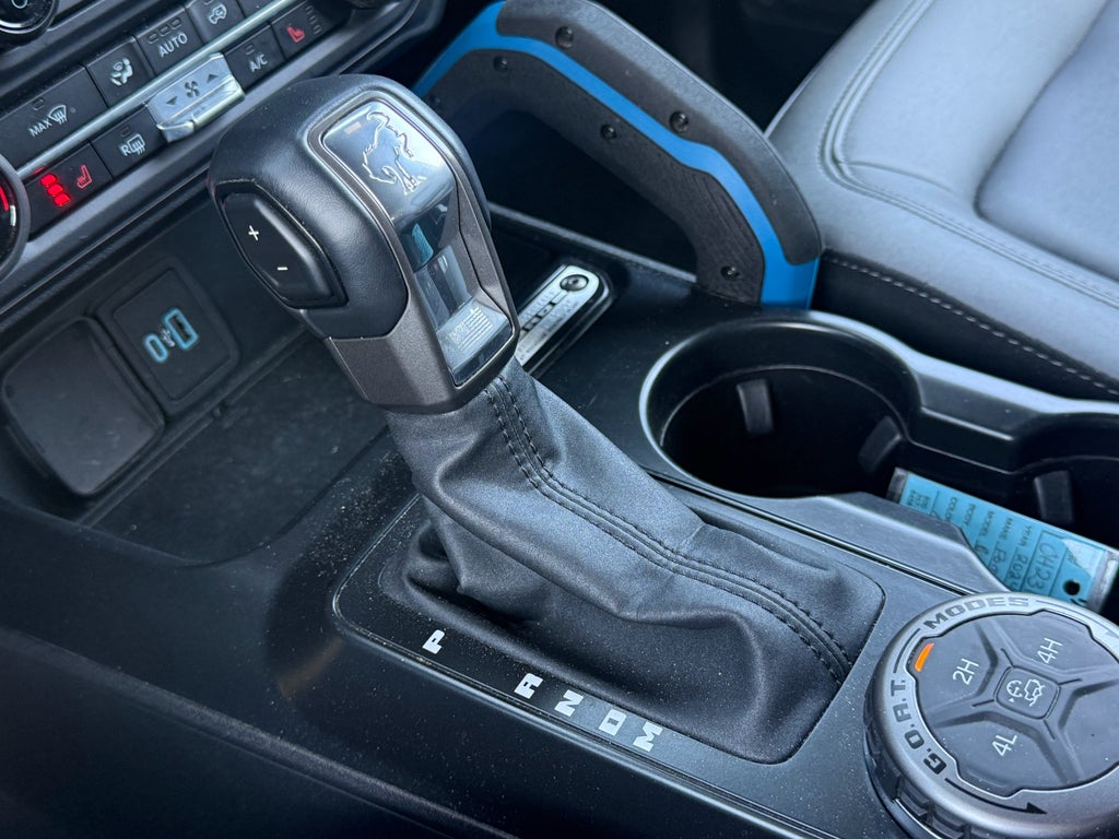 Equipment Group 322A Mid Package: 17" Black High Gloss-Painted Aluminum Wheels; 4.46 Axle Ratio; Rear Parking Sensors; Power Outlet - Back Side of Center Floor Console; Dual Smart Charging USB Ports; 2.3L EcoBoost I-4 Engine; Front Row Heated Seats; Auto-Dimming Interior Rearview Mirror; Driver and Front Passenger Illuminated Sliding Visor Vanity Mirrors; 6 020 lbs GVWR; AM/FM Stereo; Dual-Zone Electronic Automatic Temperature Control; Marine Grade Vinyl Bucket Seats; Connected Navigation; LT265/70R17 A/T Tires; Ambient Footwell Lighting; Remote Start System; 2-Door Intelligent Access with Lock/unlock Ford Co-Pilot360: Auto High-Beam Headlamps; Rear View Camera; Pre-Collision Assist with Automatic Emergency Braking; Blind Spot Information System (BLIS); Lane-Keeping System Carbonized Gray Molded-In-color Hard Top Velocity Blue Metallic **Equipment listed is based on original vehicle build and subject to change. Please confirm the accuracy of the included equipment by calling the dealer prior to purchase.**