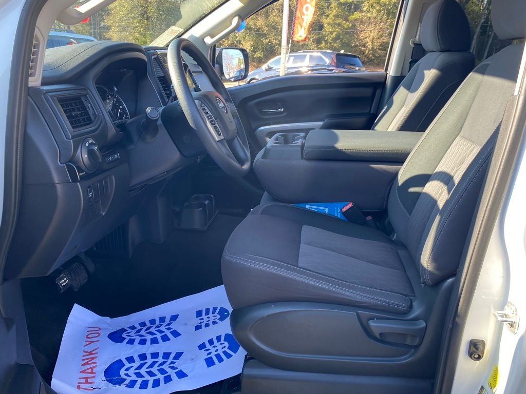 This Titan SV is not just a capable workhorse, but a well-appointed and technologically advanced truck. Enjoy the convenience of Apple CarPlay and Android Auto, as well as the peace of mind provided by the blind spot warning and rear parking sensors. The cloth seat trim and front split bench seat offer comfort and versatility, while the power windows, power door mirrors, and speed control make every drive a breeze.
