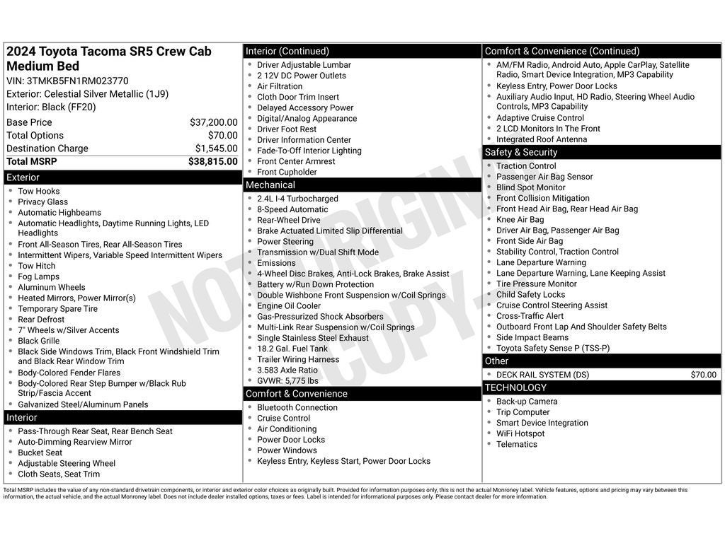 - Vehicle Name: Toyota Tacoma 2WD