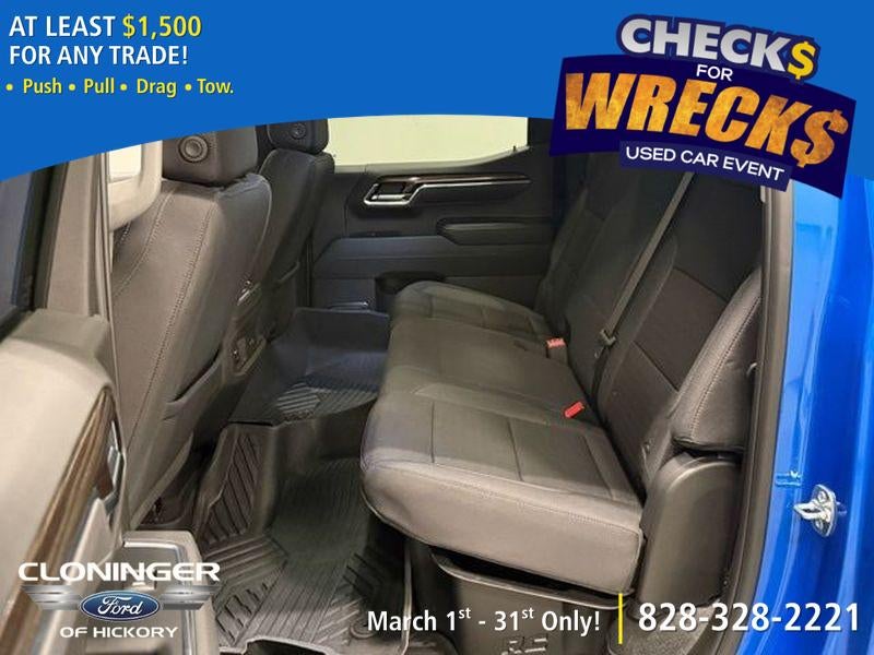 Dark Essentials Package: Black Name Plates; Black Tailgate CHEVROLET Lettering. Preferred Equipment Group 2LT: HD Rear Vision Camera; 20" X 9" High Gloss Black Painted Aluminum Wheels; Rear 60/40 Folding Bench Seat (folds Up); Cloth Seat Trim; SiriusXM with 360L Trial Subscription; Bluetooth® For Phone; Trailering Package; Standard Tailgate; Front LED Fog Lamps; Tire Pressure Monitoring System; Suspension Package; Steering Wheel Audio Controls; Teen Driver; Color-Keyed Carpeting Floor Covering; OnStar Services Capable; Power Front Windows with Passenger Express Down; Inside Rearview Mirror with Tilt; 2-Speed Electronic Autotrac Transfer Case; Deep-Tinted Glass; 12.3" Multicolor Reconfigurable Digital Display; 6-Speaker Audio System; All-Weather Floor Liner; High Gloss Black Mirror Caps; Electronic Cruise Control; Power Rear Windows with Express Down; Chevy Safety Assist; Performance Red Recovery Hooks; Integrated Trailer Brake Controller; Power Front Windows with Driver Express Up/down; EZ Lift Power Lock and Release Tailgate; 275/60R20SL AT BW Tires; Convenience Package; Auto-Locking Rear Differential; Heated Power-Adjustable Outside Mirrors. Protection Package: Rear Wheelhouse Liners; Chevytec Spray-On Black Bedliner. Front Bucket Seats. Black Work Step (LPO). Riptide Blue Metallic. Power Tailgate. **Equipment listed is based on original vehicle build and subject to change. Please confirm the accuracy of the included equipment by calling the dealer prior to purchase.**