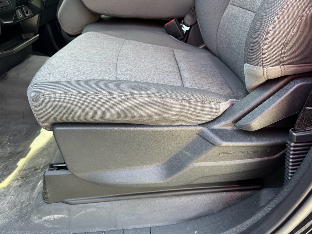 Equipment Group 101A Standard, 4 Speakers, 4-Wheel Disc Brakes, ABS brakes, Air Conditioning, AM/FM radio: SiriusXM with 360L, Auto High-beam Headlights, Brake assist, Cloth 40/20/40 Front Seat, Compass, Delay-off headlights, Driver door bin, Dual front impact airbags, Dual front side impact airbags, Electronic Locking w/3.73 Axle Ratio, Electronic Stability Control, Emergency communication system: SYNC 4 911 Assist, Front anti-roll bar, Front Center Armrest, Front reading lights, Front wheel independent suspension, Fully automatic headlights, Heated door mirrors, Illuminated entry, Internet access capable: FordPass Connect 5G, Low tire pressure warning, Occupant sensing airbag, Outside temperature display, Overhead airbag, Overhead console, Panic alarm, Passenger door bin, Passenger vanity mirror, Power door mirrors, Power steering, Power windows, Radio data system, Radio: AM/FM Stereo w/SiriusXM 360L, Rear Parking Sensors, Rear step bumper, Rear Window Fixed Privacy Glass w/Defroster, Remote keyless entry, Security system, Speed control, Steering wheel mounted audio controls, SYNC 4 w/Enhanced Voice Recognition, Tachometer, Tailgate Step w/Work Surface, Telescoping steering wheel, Tilt steering wheel, Traction control, Trip computer, Variably intermittent wipers, Voltmeter, and Wheels: 17 Silver Steel.