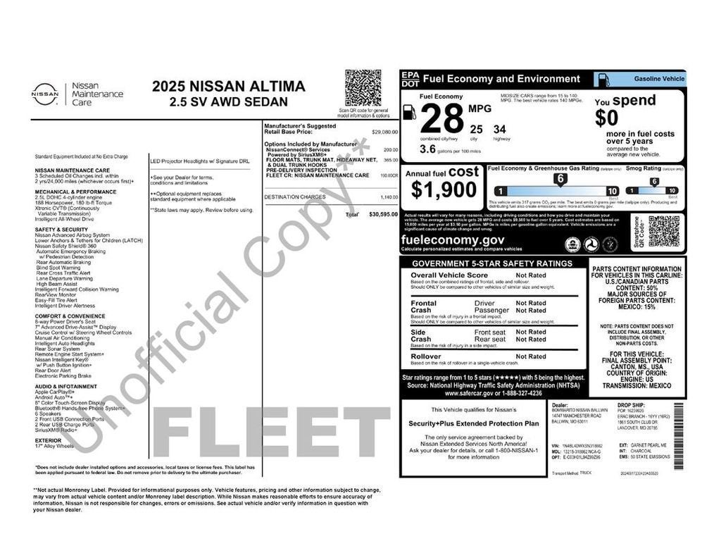 Start it from inside with remote start. This mid-size car has a clean CARFAX vehicle history report. This vehicle is a certified CARFAX 1-owner. This mid-size car comes equipped with Android Auto for seamless smartphone integration on the road. This Nissan Altima will allow to see the road and so much more with the HID headlights. The rear parking assist technology on the Nissan Altima will put you at ease when reversing. The system alerts you as you get closer to an obstruction. This 2025 Nissan Altima 's Forward Collision Warning feature alerts drivers to potential front-end collisions. with XM/Sirus Satellite Radio you are no longer restricted by poor quality local radio stations while driving this Nissan Altima. Anywhere on the planet, you will have hundreds of digital stations to choose from. See what's behind you with the back up camera on the Nissan Altima. This unit's Lane Departure Warning helps keep you in your lane.