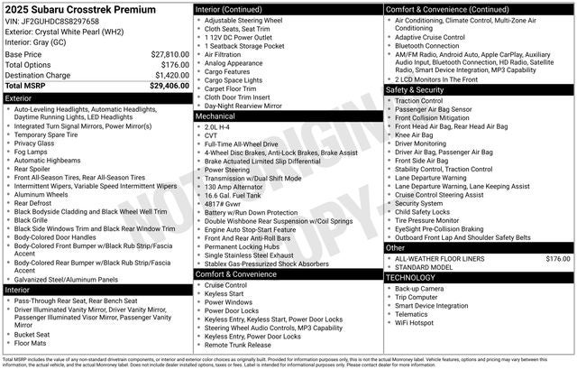 The 2025 Subaru Crosstrek Premium is the perfect blend of rugged capability and refined comfort, designed to elevate your driving experience. With its impressive all-wheel-drive performance and exceptional fuel efficiency, this versatile crossover is the ideal companion for your adventures, whether navigating urban landscapes or exploring the great outdoors.